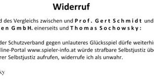 Thomas Sochowsky widerruft seine Behauptung gegen Spieler-Info.at als unwahr.